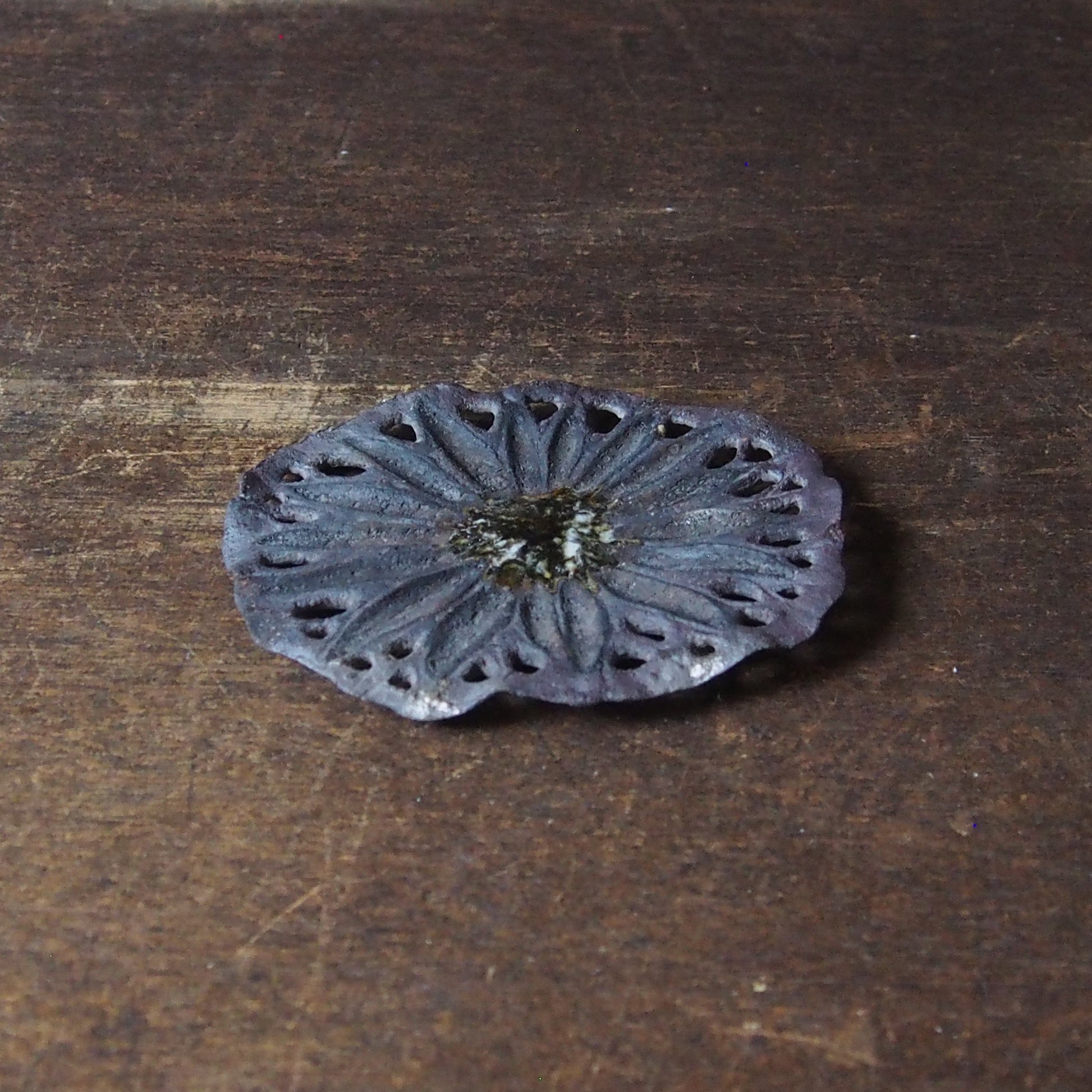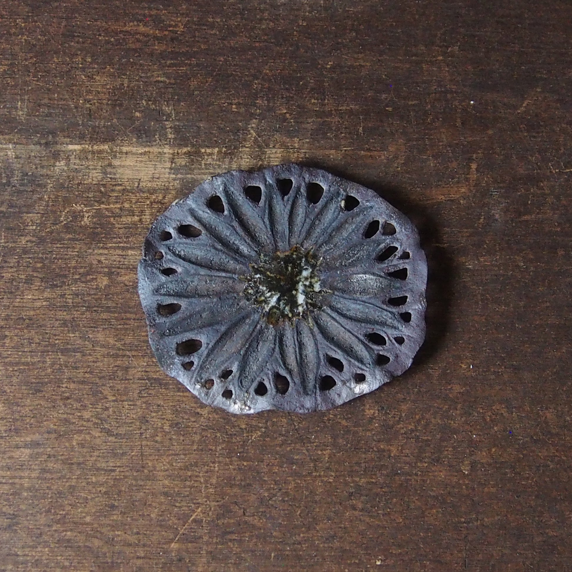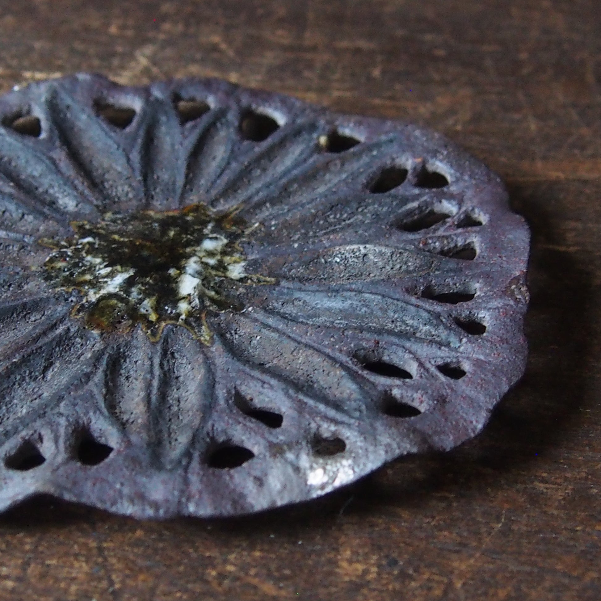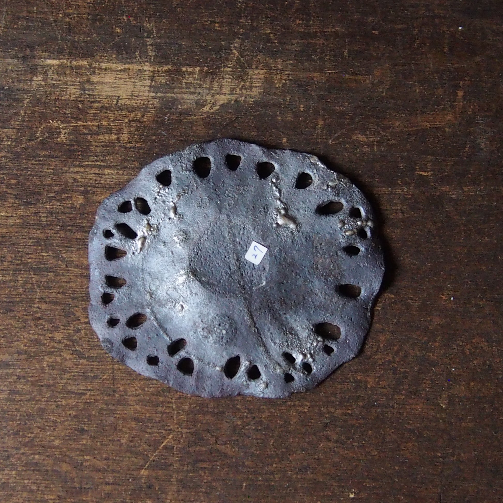 27 蓮葉皿 炭化・彫り抜き(銀彩/漆) | 紫蓮