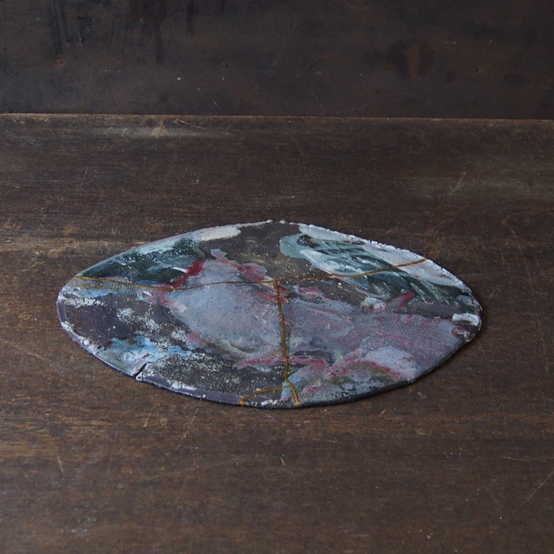 50 flat plate 炭化(金継ぎ/漆) | 紫蓮