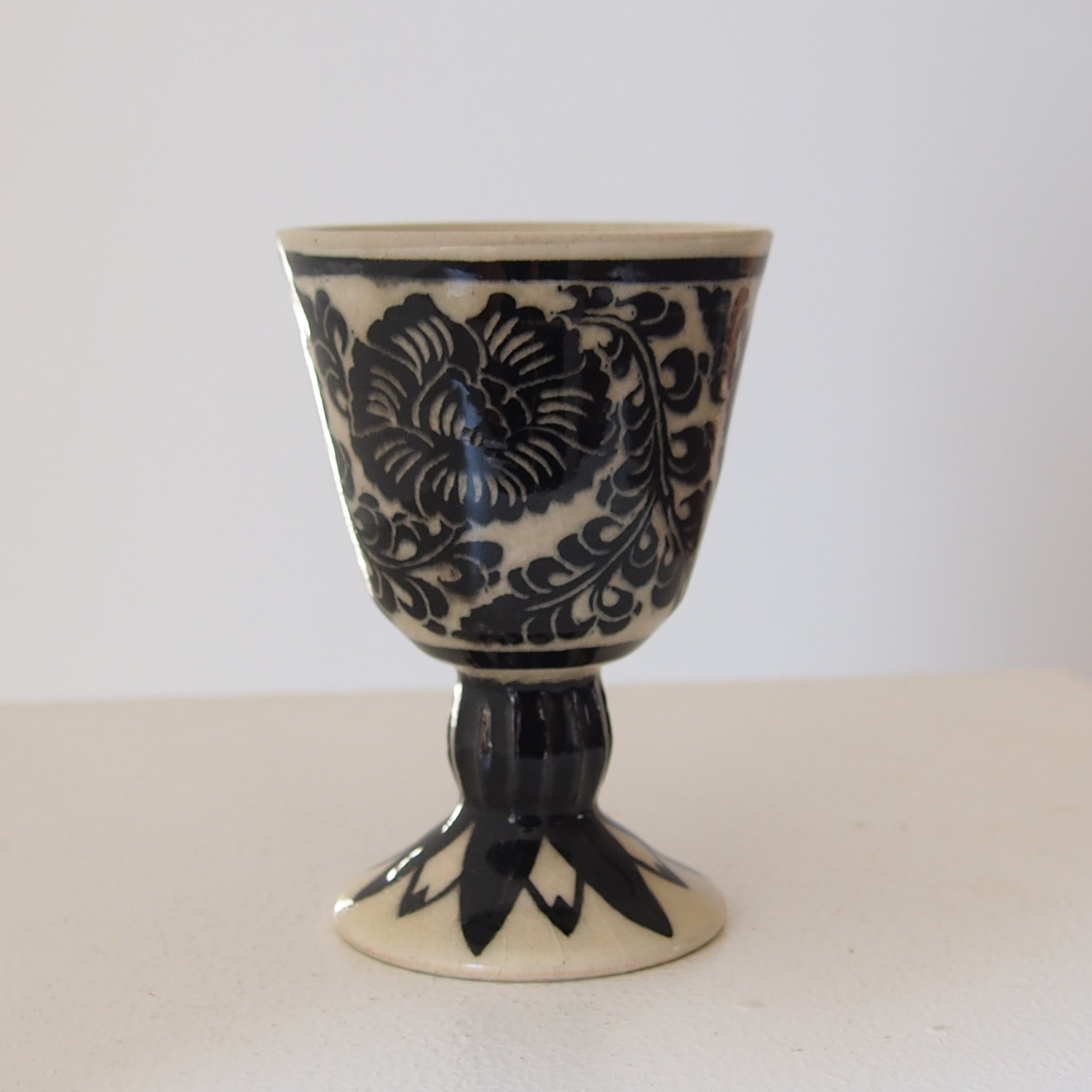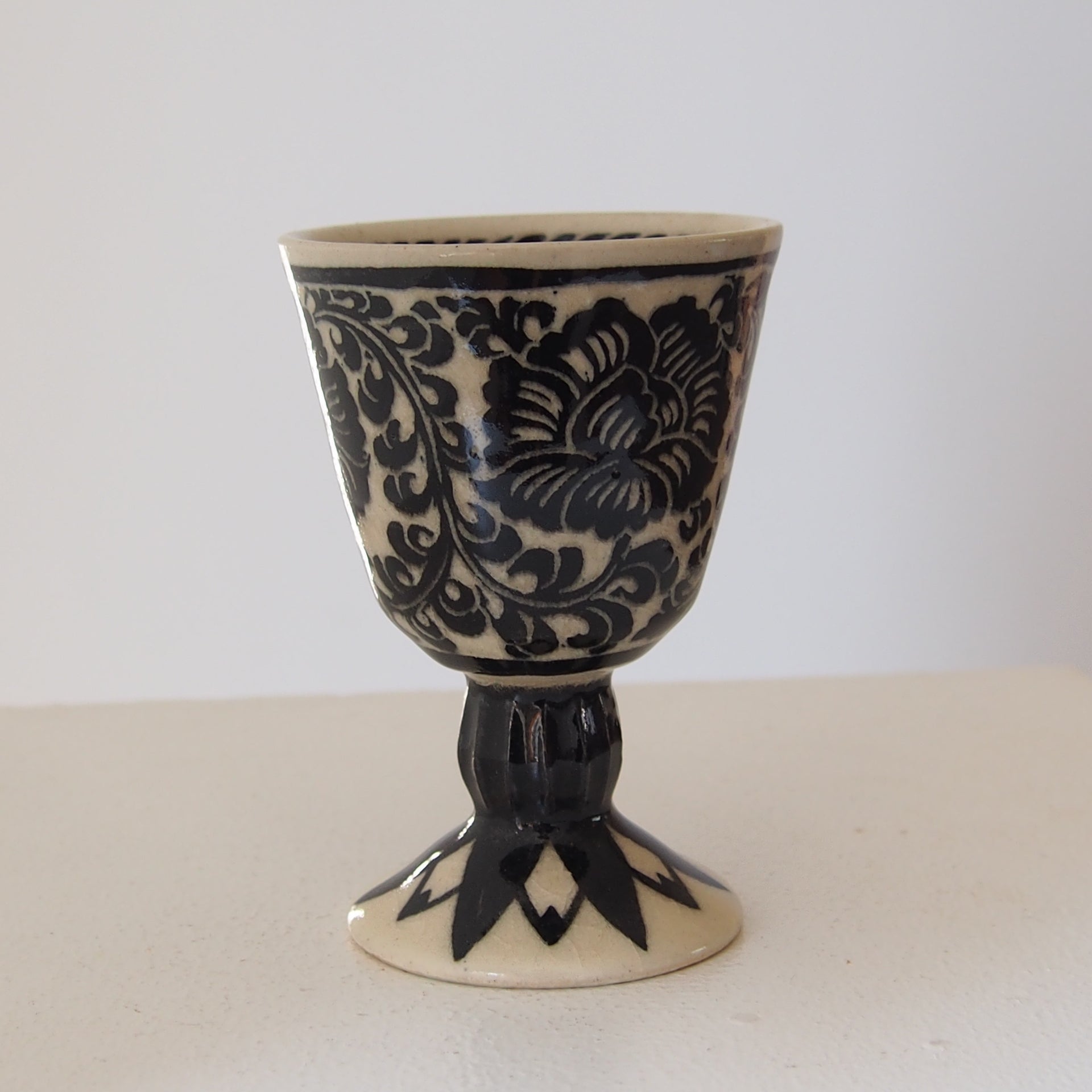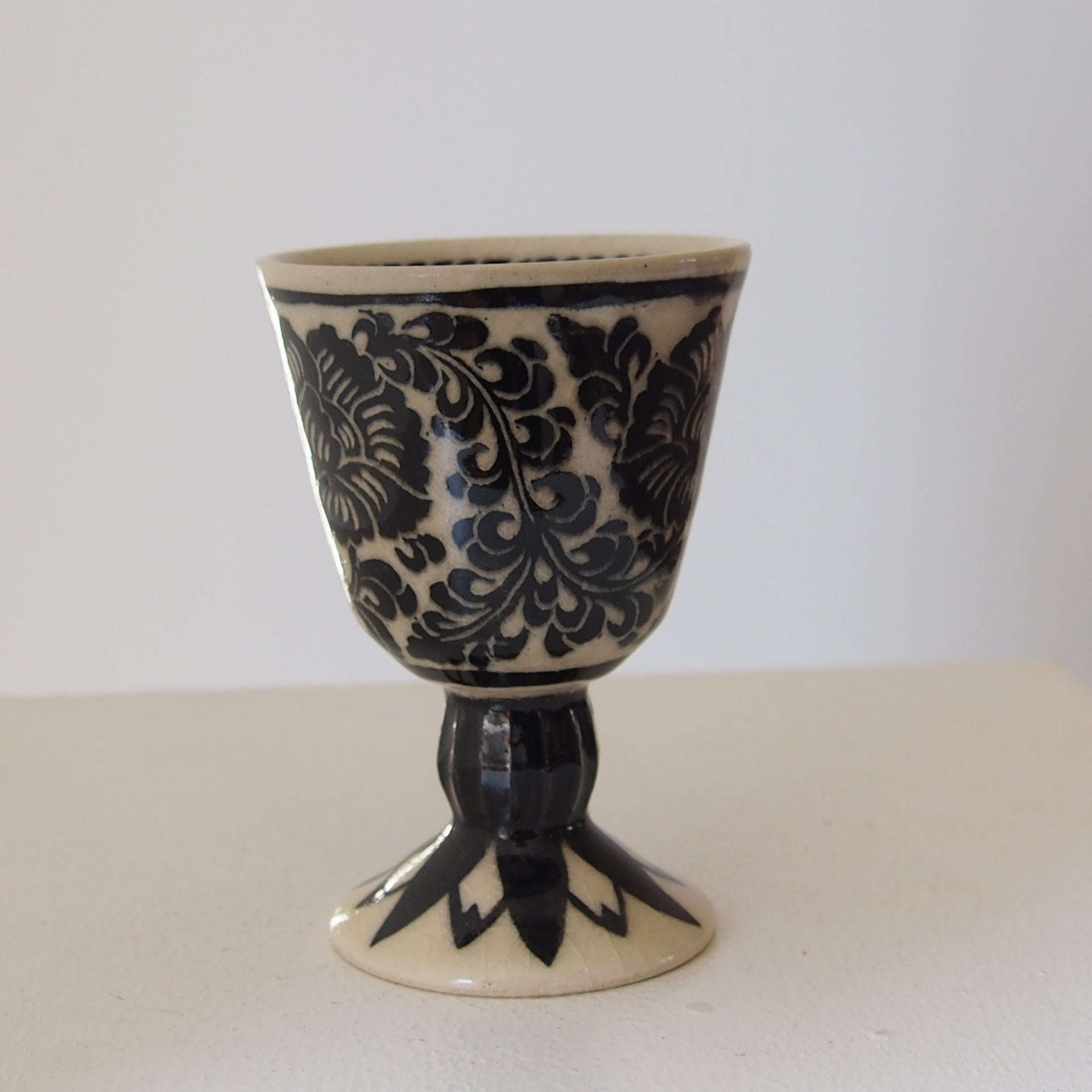 6-2 ゴブレット(白黒の花柄) | 川島いずみ